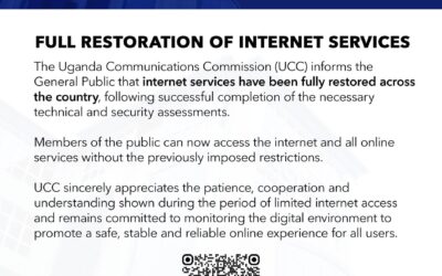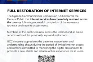 Internet services have been fully restored across Uganda, marking a return to normal online access after a period of restrictions during the electoral season. The Uganda Communications Commission (UCC) announced on Monday, January 26, 2026, at 12:40 PM that internet services nationwide had been fully reinstated following the successful completion of necessary technical and security…